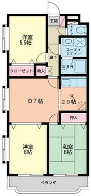 | 間取り | 3DK(和室6畳/洋室5.5畳/洋室6畳/DK9.8m2) | 主要採光面 | - |